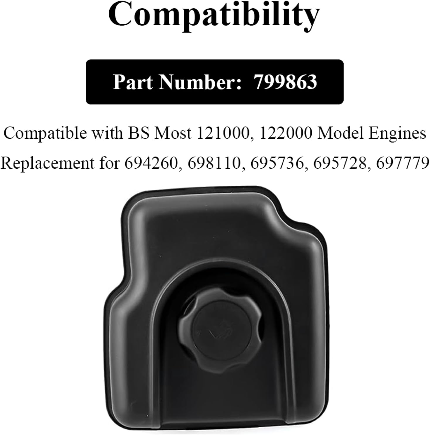 Feature: 【Compatibility】799863 fuel tank is compatible with BS 121000, 122000 series engines, easily adapting to most models. At the same time, it can be used as a direct replacement for 694260, 698110, 695736, 695728, 697779 fuel tanks, without the need for cumbersome modifications to ensure smooth engine operation.【Stable & Reliable】The use of 799863 fuel tank ensures that the engine receives a stable and sufficient supply of fuel. This not only improves the overall performance of the engine, but also enhances its operational stability.【PU Material】The fuel tank is made of PU material, which has good chemical stability. It keeps the fuel pure, and ensures the engine works efficiently and stably.【High Pressurization Capacity】799863 fuel tank has good pressurization capacity, which can easily cope with the challenges brought by fuel weight and engine vibration. Its sturdy structural design ensures the stability and endurance of the fuel tank under complex working conditions.【Secure Sealing】The fuel tank cover adopts precision threaded connection with clear, standard and deep design, which effectively prevents slippage and ensures tight connection. Specification:Name: Fuel TankPart Number: 799863Material: PUColor: BlackSize: As ShownFitment:Compatible with BS Most 121000, 122000 Model EnginesPackage Included:1 * Fuel Tank