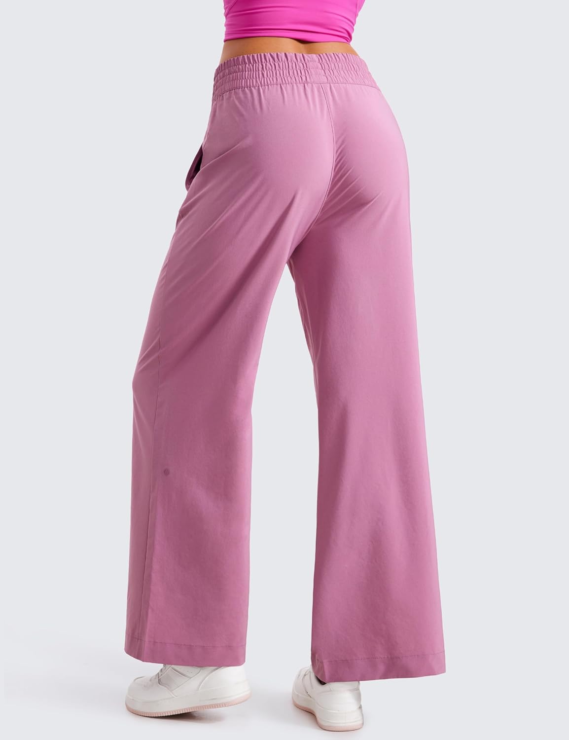 Feathery-Fit Soft Collection: Ultra Soft & Weightless PantsThese pants are made of ultra-soft, weightless, breathable fabric, quick-drying, and cool to touch. It's perfect for casual, travel, running errands, or work Feature & Fitting:Upgraded Feathery-Fit fabricWide legSide pockets 30'' inseamFabric:Soft and lightweightQuick dry, Moisture wicking and breathableSlightly stretchy and cool to touchNo swish-swish sound86% Polyester, 14% Elastane