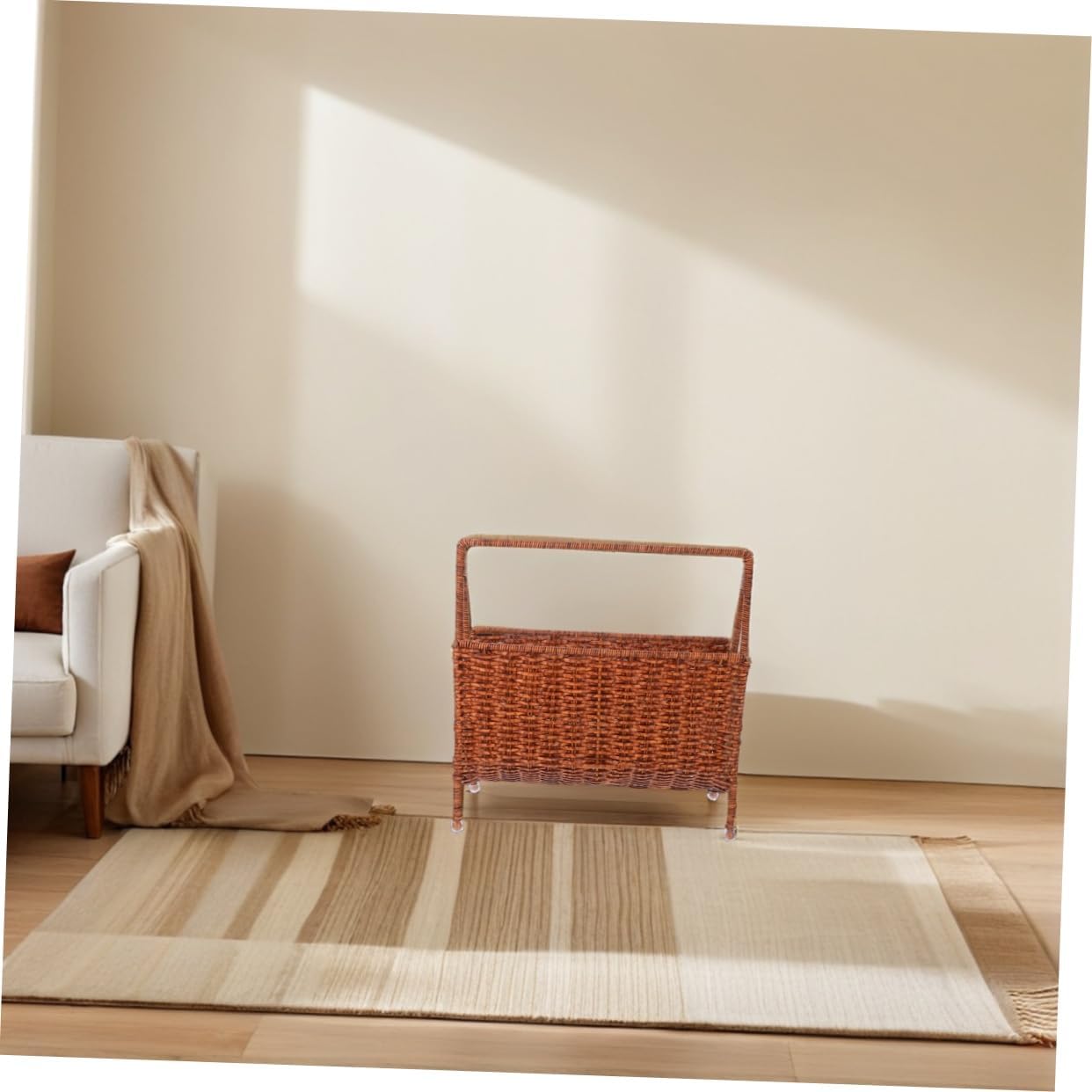 DescriptionThis handwoven magazine holder is a stylish solution for decluttering spaces while adding a touch of elegance. Its compact design allows it to fit effortlessly into small areas, such as beside a sofa or under a desk. The natural woven texture creates a warm and inviting atmosphere, good for cozy interiors.Features-Color:Brown-Material:PE-Size:36.00X35.00X10.50cm/14.15X13.76X4.13in-Rustic charm: the faux rattan design adds a rustic, natural touch to your home, enhancing its decorative appeal-Space optimization: ideal for small spaces, it effectively utilizes corners and other tight areas for storage-Dual purpose: suitable for living rooms and guesthouses, serving as both a storage solution and a decorative element- and stable: strong construction ensures that magazines and books are securely stored without risk of falling-Simple upkeep: easy to clean materials make maintenance a breeze, keeping the rack looking new