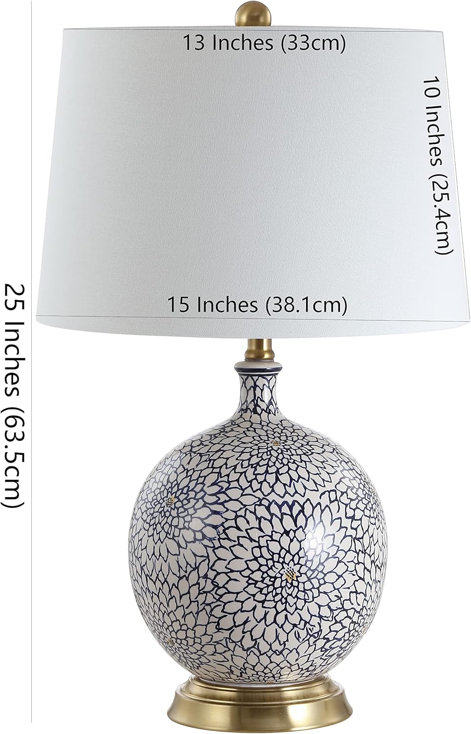 Designed for today’s tastemakers, this table lamp elevates any interior with its graceful style. Finely crafted, its intricate blue and white oversize floral pattern lends a fresh modern edge to this new classic. Its complementary crisp cotton shade adds a clean finishing touch.